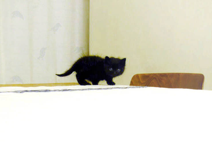写真は現在Cloverの事務所に居候中の黒猫くんです。事務所近くで拾われて来週めでたく婿入りが決定しました! 婿入りにむけ、猫道修行中です。マコロン社長にポニョと呼ばれています(まんまるおなかだから)。ちなみに、マコロン社長はポニョは見ていないそうです(猫だから?)。